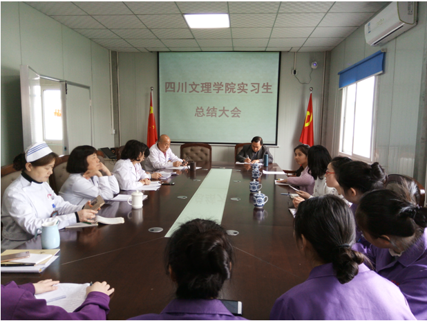 靳能泉经理对康疗院一直以来对公司的支持及对实习员工的付出表示感谢,并对公司与成都市康疗院的深入合作、养老服务人才培养等相关问题进行深入探讨,希望同学们增强专业认同、保持持续学习、专注发展定力。成都市老年康疗院护理部陈主任对公司老年服务与管理专业顺利完成顶岗实习表示祝贺,并对同学们四个月以来的生活、心理及工作情况进行了总结。实习带教老师及全体实习员工针对实习过程中存在的问题进行了反思,并就康疗院发展、养老人才培养提出自己的见解。