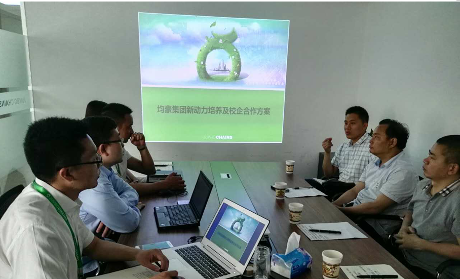 在均豪,靳能泉一行观看了均豪的宣传片,全方位了解了公司的业务范围和服务区域,并就专业嵌入式课程设置、人才培养激励措施、员工顶岗实习和专业实习、教师实践锻炼和员工培养等问题进行了讨论交流,双方达成合作的初步意向。