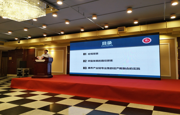 在发言中,刁董事长就产教融合、校企合作的国内外宏观背景着手,详细阐述了公司转型发展在学科专业布局和产教融合校企合作的顶层设计和重要思考,具体介绍了公司组建tyc5997太阳集团、打造康养产业链专业集群的主要做法,重点说明了康养、康养产业与产教、产教融合的学术新意,深入剖析了康养产业链专业集群的具体内涵和实践举措,并明确指出康养产业链专业集群促进产教融合必须在“教、学、做、用、悟和产、学、研、训、创”的关系把握与交互和合中下功夫。刁董事长的整个发言,理例充分、讲解清晰、观点鲜明、内容新颖,赢得了与会人员的高度认可。