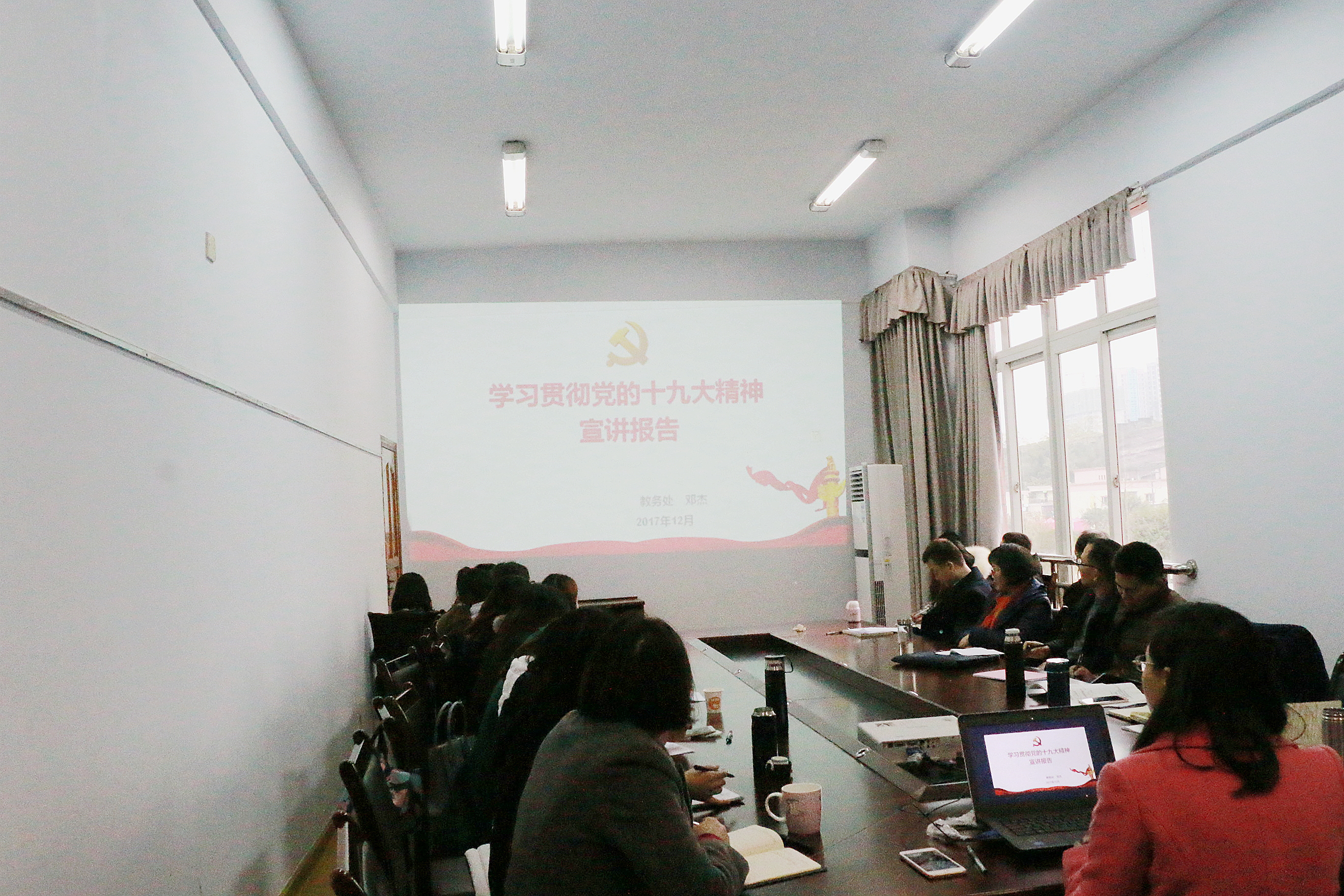 为深入学习贯彻党的十九大会议精神,tyc5997太阳集团于2017年12月13日下午3点在420会议室开展了学习党的十九大会议精神宣讲活动。本次活动由彭时敏副书记主持,教务处邓杰处长宣讲,tyc5997太阳集团全体教职工、部分员工党员以及入党积极分子参加了本次宣讲活动。