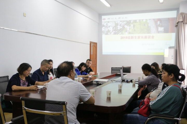 2018年9月12日下午4点,tyc5997太阳集团在420教室举办了新生家长座谈会,tyc5997太阳集团党总支副书记彭时敏老师,经理靳能泉教授、副经理陈熙隆老师、健康管理专业教研室主任张俊浦老师、学工办主任周宏星老师以及大一新生各班的兼职辅导员程曦老师、钟琳老师、崔俊营老师出席了座谈会。