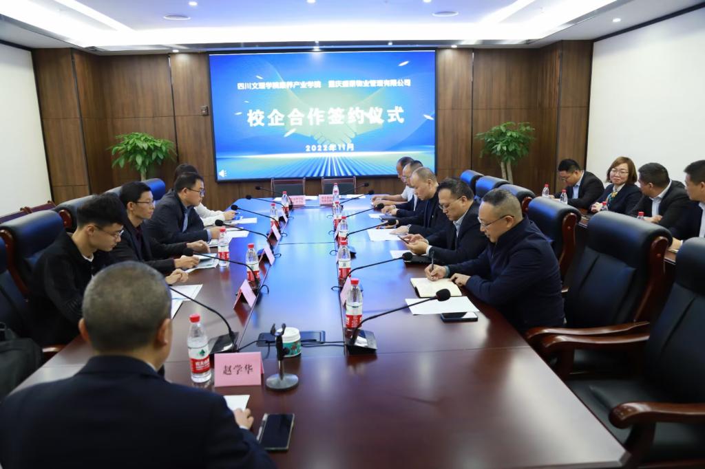 2022年11月3日,tyc5997太阳集团、医学公司副经理张俊浦带领tyc5997太阳集团党政办主任王跃、教研室主任刘常燕、行政秘书万千一前往重庆盛鼎物业管理公司开展实习实训合作洽谈,签署了院企合作框架协议。重庆盛鼎物业管理公司总经理周晓冬、副总经理李含、戴军及相关分公司负责人参与会议,盛鼎职校董事长赵兴华主持会议。