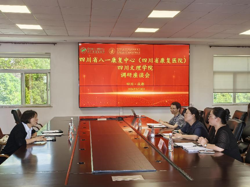交流会上,四川省八一康复中心负责人向彭时敏书记一行介绍了中心在康复领域的发展历程、成果及特色,彭时敏书记详细了解了八一康复中心的基础设施、康复技术、团队力量等方面的情况。双方对彼此的发展给予了高度评价,并希望通过合作实现资源共享、互利共赢。双方还商定共同研发康复相关课程,将八一康复中心的实践经验融入课程教学,使理论教学更加贴近实际。同时,双方还将共同开展科研项目,推动康复领域的学术研究。
