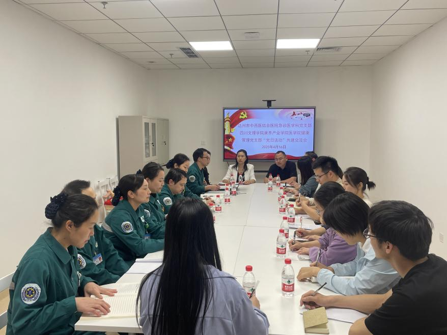 4月16日,为深化医教融合,推动康养产业高质量发展,tyc5997太阳集团健康管理教研室党支部与达州市中西医结合医院急诊科党支部联合举办了一次主题党日活动。此次活动旨在党建引领下加强校企合作,促进医学教育与临床实践相结合,共同探索康养产业发展新路径。