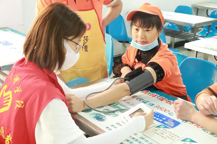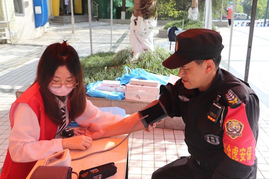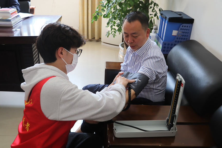 志愿服务队由健康服务与管理、护理专业30余名同学组成,分别深入行政楼、教学楼、门卫、公寓、食堂和校园超市,充分利用所学专业知识为大家测量血压,并宣传普及血压分类、预防和治疗知识,共测量100余人次。