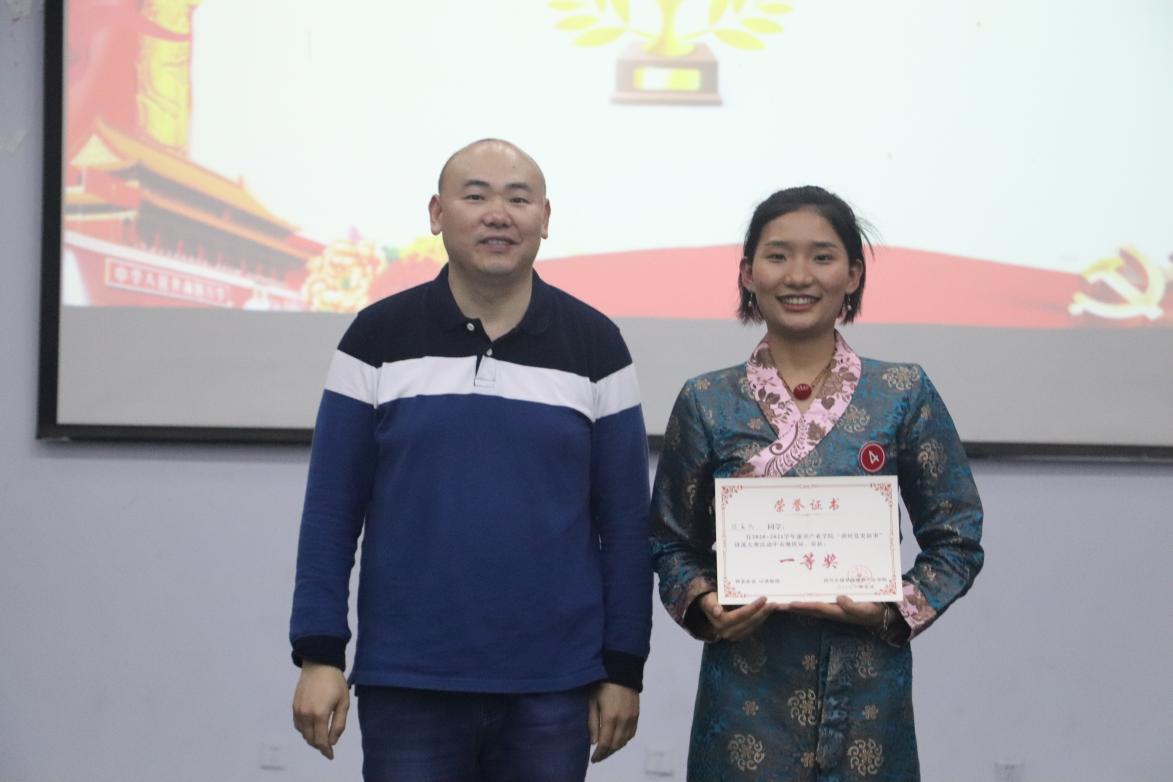 一个个党史故事串起一段段红色历史,一次一次深情演绎牵起一段段经典回忆。8位选手感情饱满、仪态自然,他们紧紧围绕着“青春向党.奋斗强国”主题,讲述了张爱萍、张富清、赵一曼等党员的动人事迹,回顾了川陕革命根据地红军烈士陵园的建园历程,新时期少数民族党员干部助力脱贫攻坚的感人事迹等。参赛选手声情并茂、抑扬顿挫的演讲让同学们感受到中国共产党人的初心和使命。经过激烈角逐,饶袁凤同学荣获一等奖。