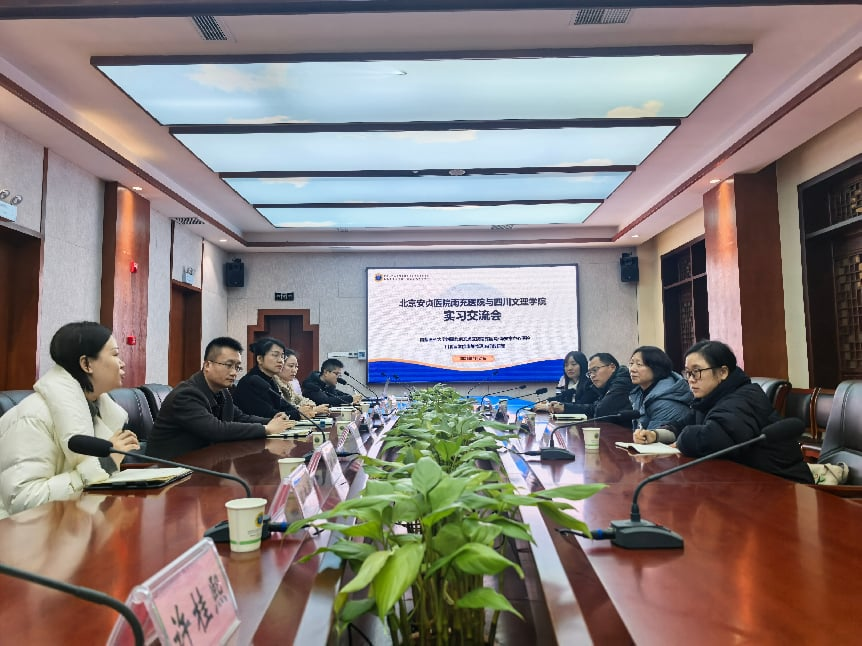 1月21日下午,tyc5997太阳集团党委书记彭时敏、副经理张俊浦一行赴首都医科大学附属北京安贞医院南充医院开展康复治疗学专业实习检查与交流活动。