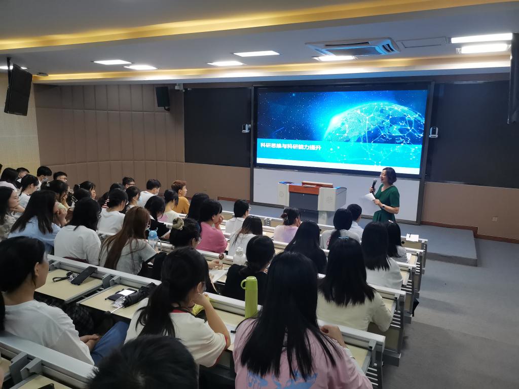 褚延鹏博士从特鲁多的名言——“偶尔能治愈,有时可缓解,常常去安慰”讲起,提出了什么是科研思维,接着从宏观层面分析了当前科研人才、科研项目、科研评估标准等有关科研的基础知识。褚延鹏博士用自身做过的多个小实验分析了科研的复杂性、科研过程的有趣及应用价值,把晦涩难懂的实验知识通过讲故事的方式给同学们进行了完整展示。